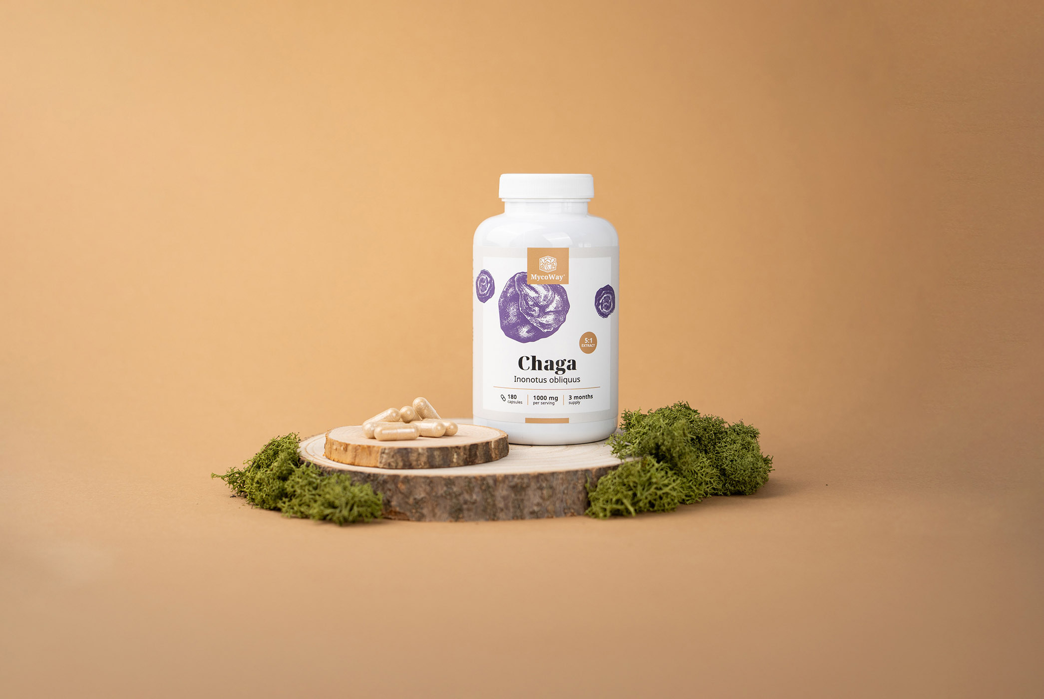 Le capsule contengono un estratto nel rapporto 5:1, il che significa che ogni grammo di estratto corrisponde a cinque grammi di chaga essiccato, che garantisce un supporto efficace e potente al corpo.