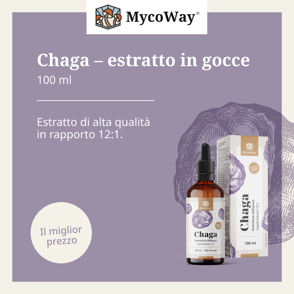 Questo è reso ancora più facile dall'estratto liquido di chaga in gocce, il quale, confezionato in una bottiglietta scura con contagocce, unisce tradizione e modernità.